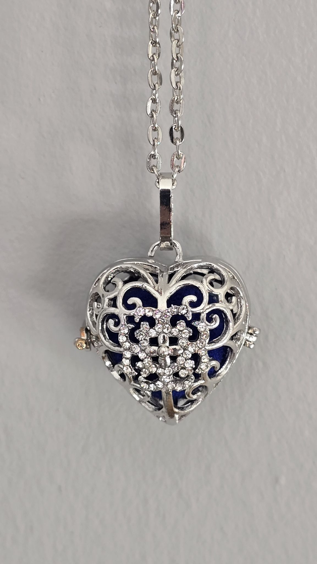Collier diffuseur de parfum - Style Coeur - Article en métal argenté - Diffuseur intérieur en feutrine.